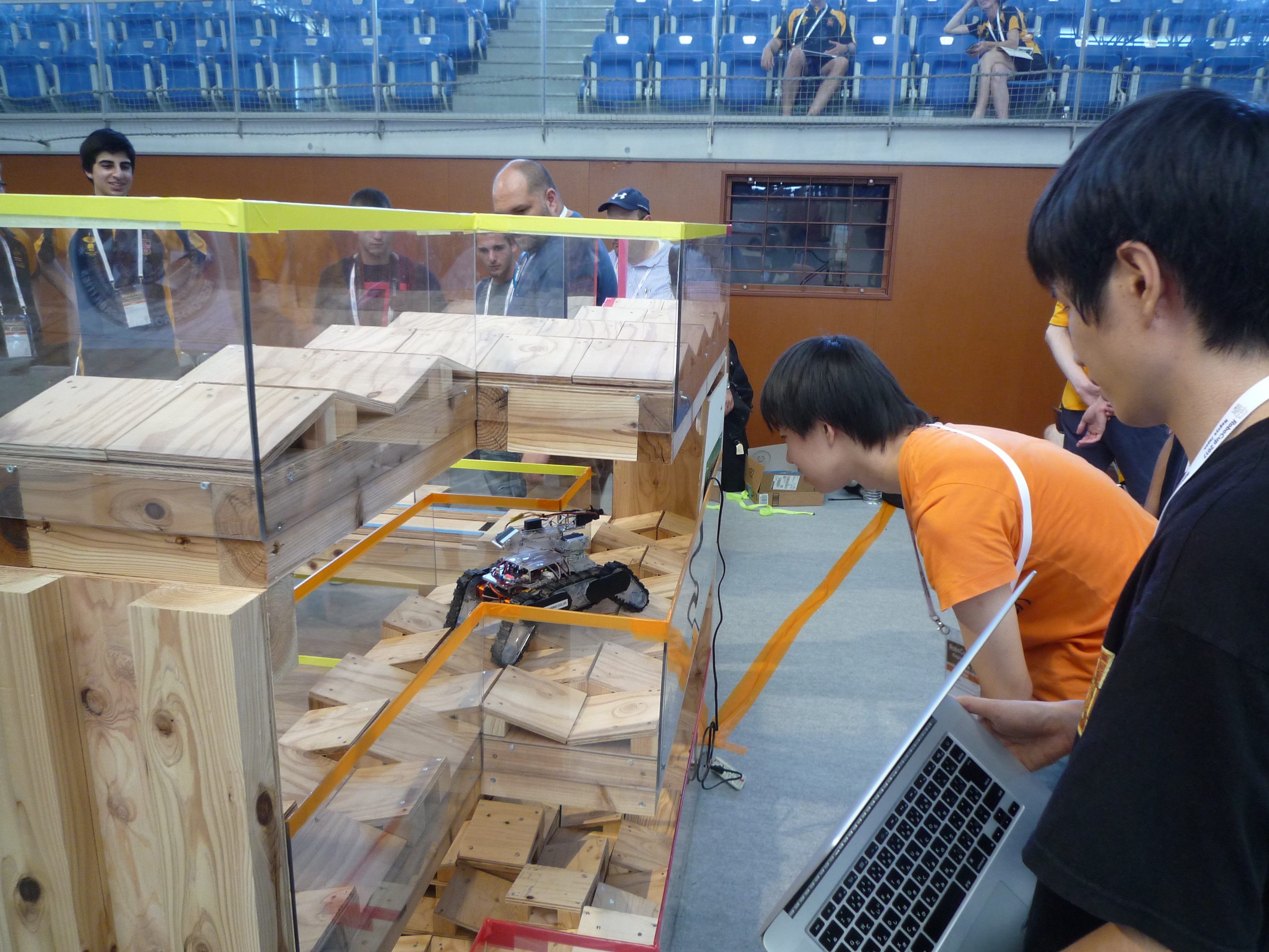 Team Tupac participated in RoboCup2017 Nagoya and got 3rd Place. We got 3rd place with this robot. This robot has 4 flipper arms ,one 3-axis robot arm and one 2DoF camera.The flippers made the robot stable moving at the uneven field.The stability was better than another wheel-moving robots.